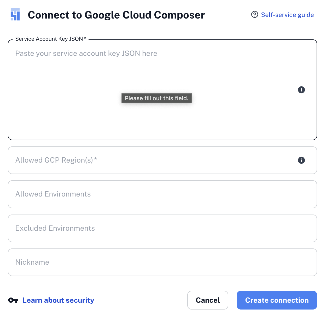 - Enter the key JSON that was generated during the service account creation