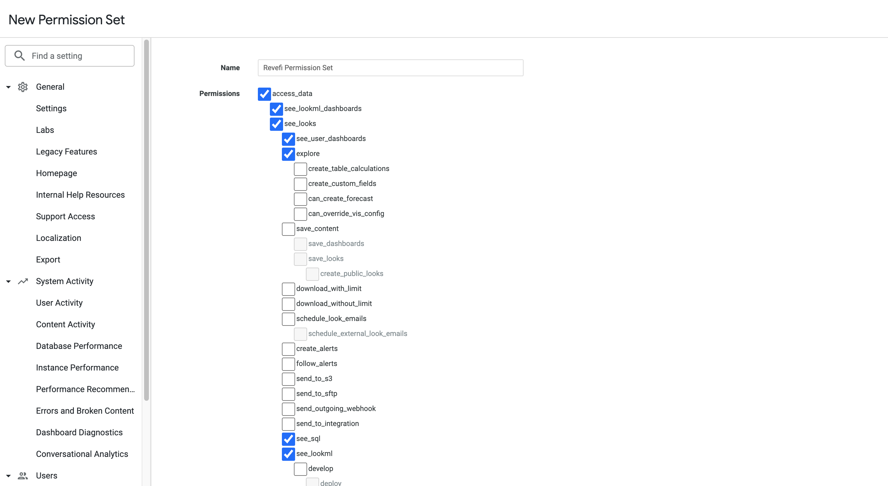 Navigate to Roles and create a new permission set called Revefi Permission Set.