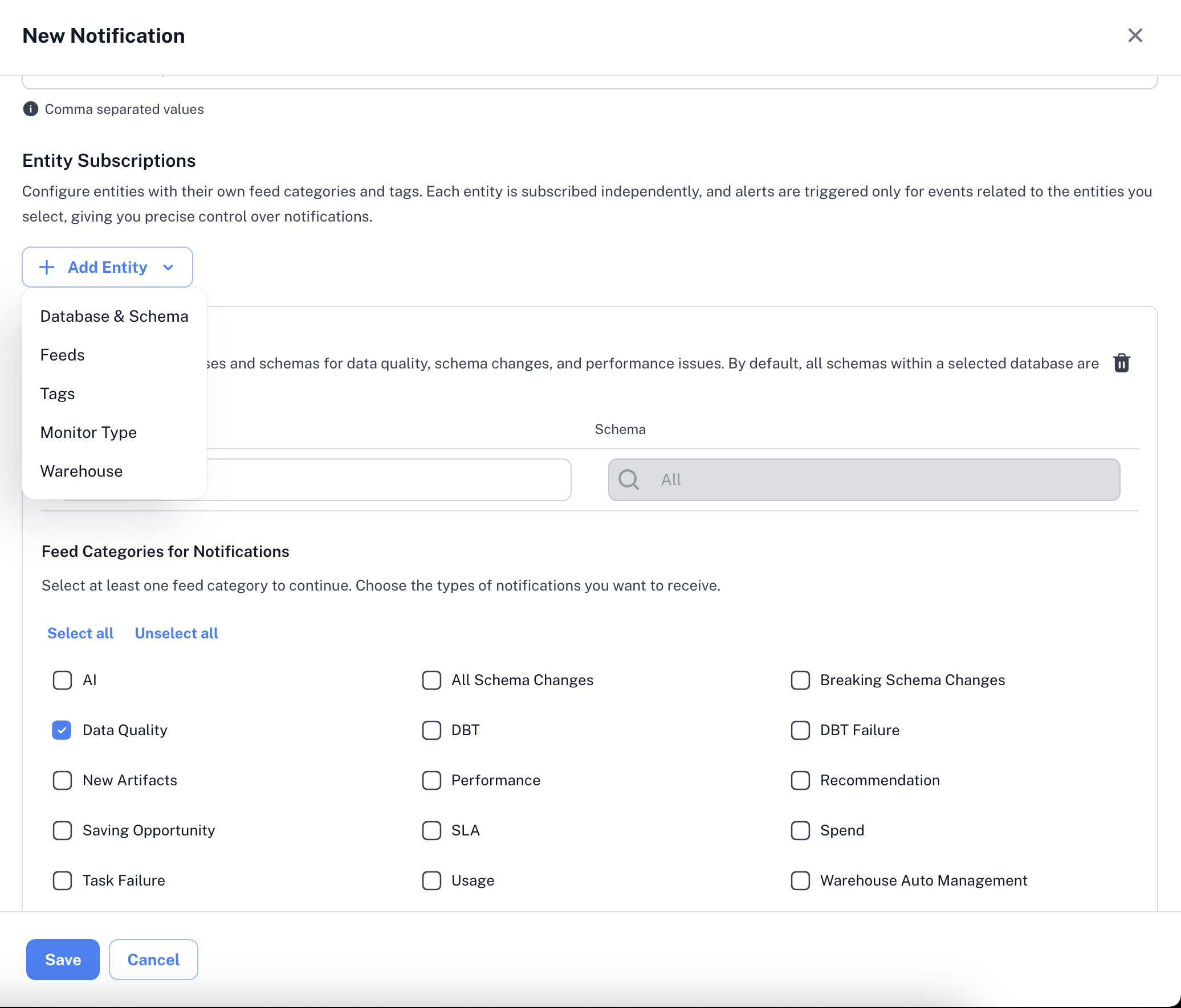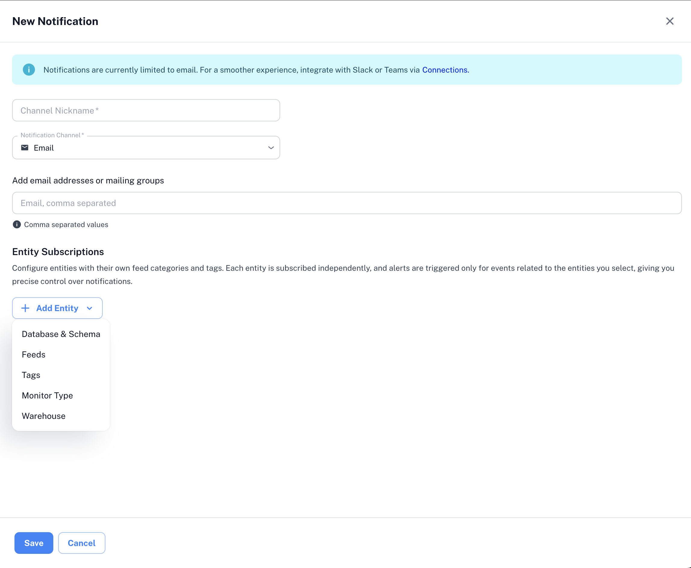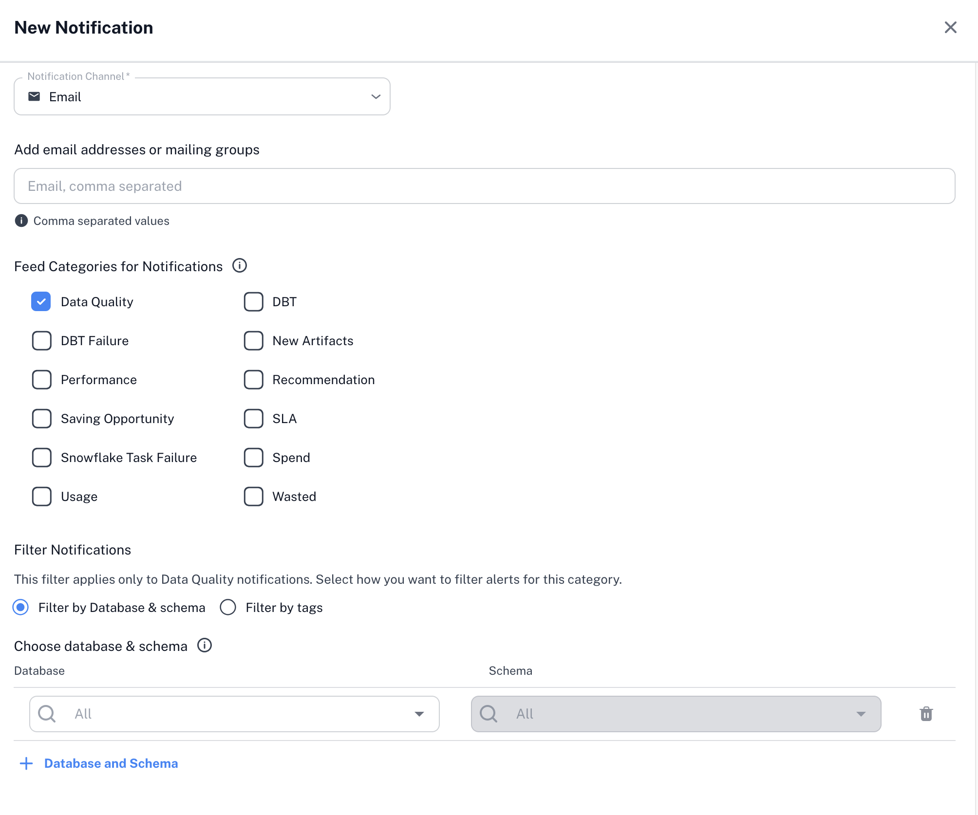 - By Database & Schema: Receive alerts only for specific databases and schemas.
