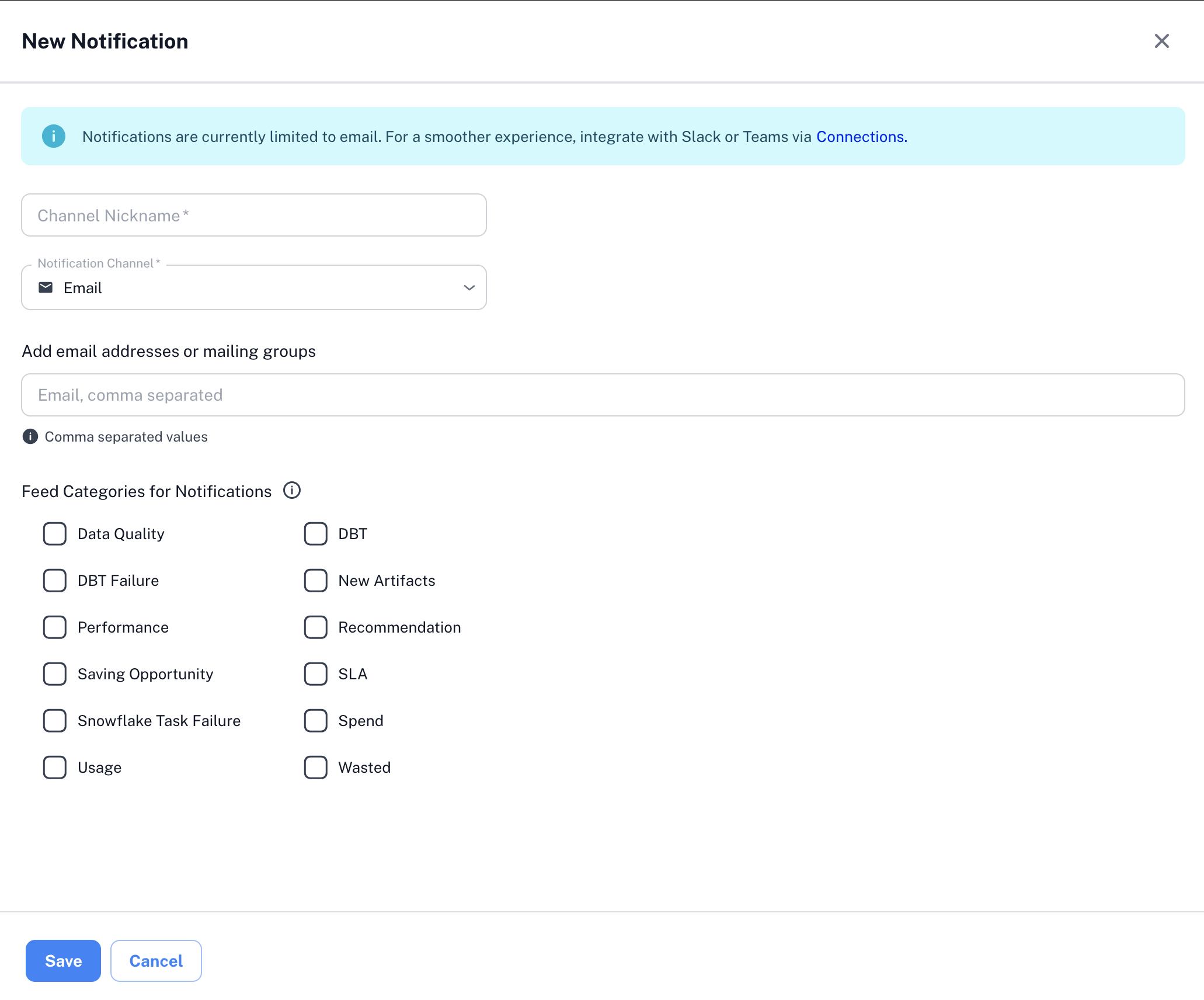 Configure and manage notification channels in Revefi to receive alerts and updates.